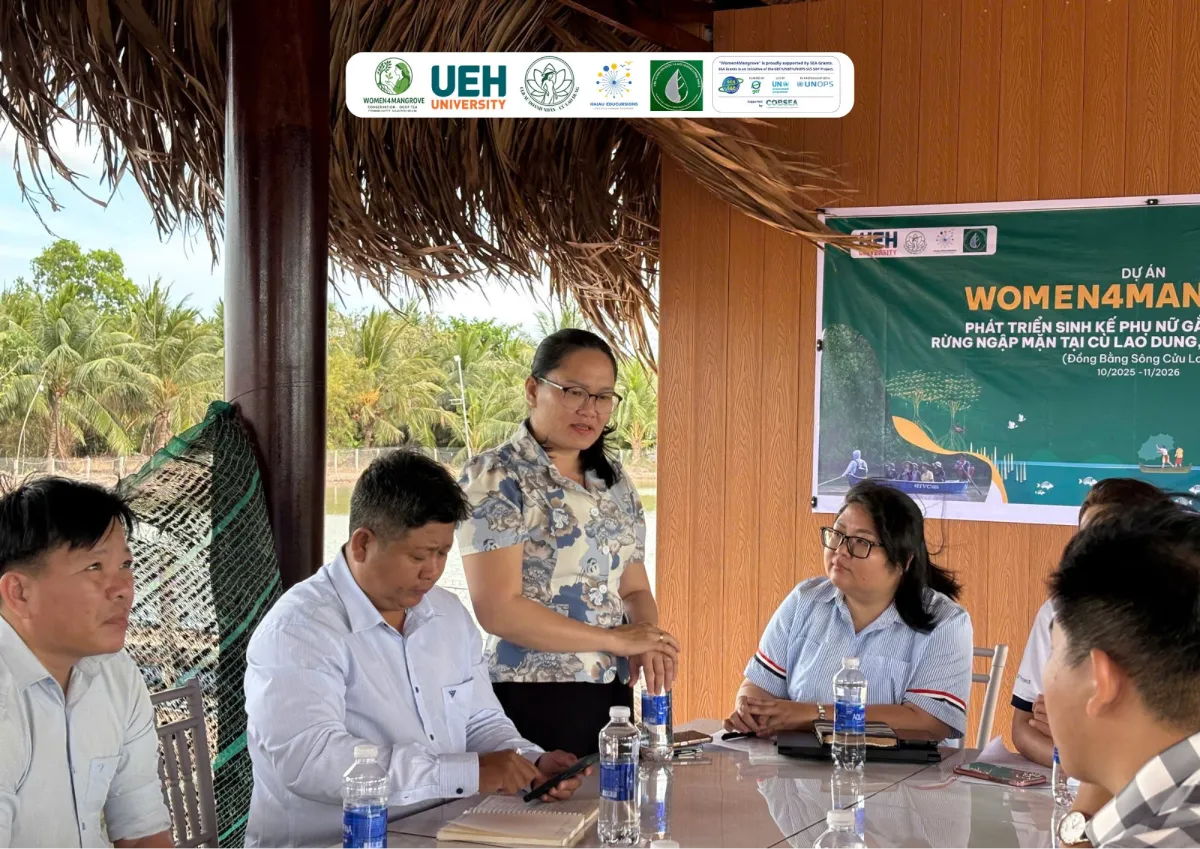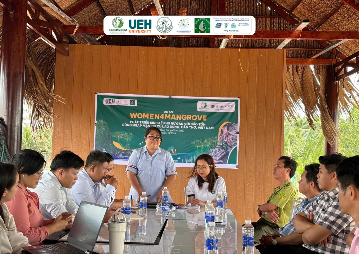 On February 11, 2026, the Women4Mangrove project held a critical stakeholder meeting at our Nursery in Cù Lao Dung, Sóc Trăng. The session brought together representatives from the District Economic Office, the Forest Protection Unit, and local women-led organizations to finalize our community campaign strategy.